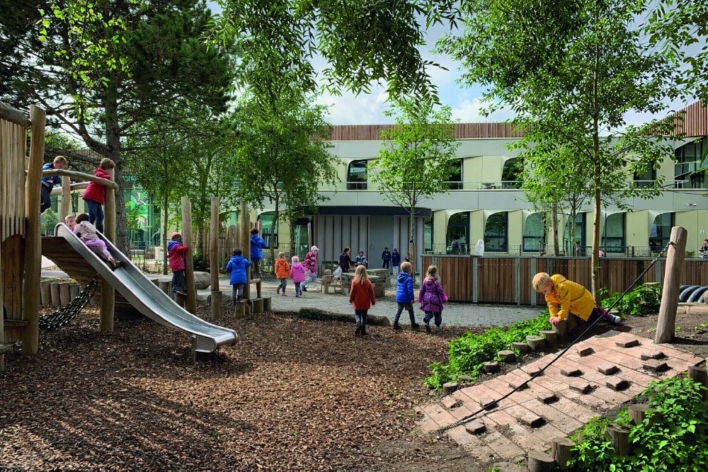 Voortgezet Onderwijs, Kindcentrum met Primair Onderwijs, Speciaal Basisonderwijs, KDV, BSO en sportvoorziening met drie gymzalen