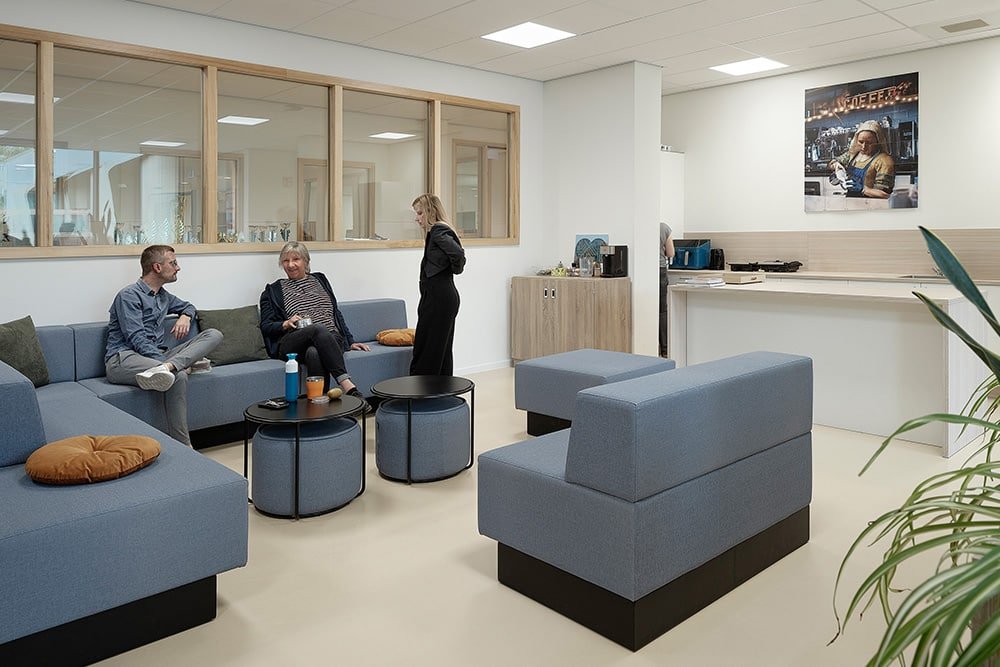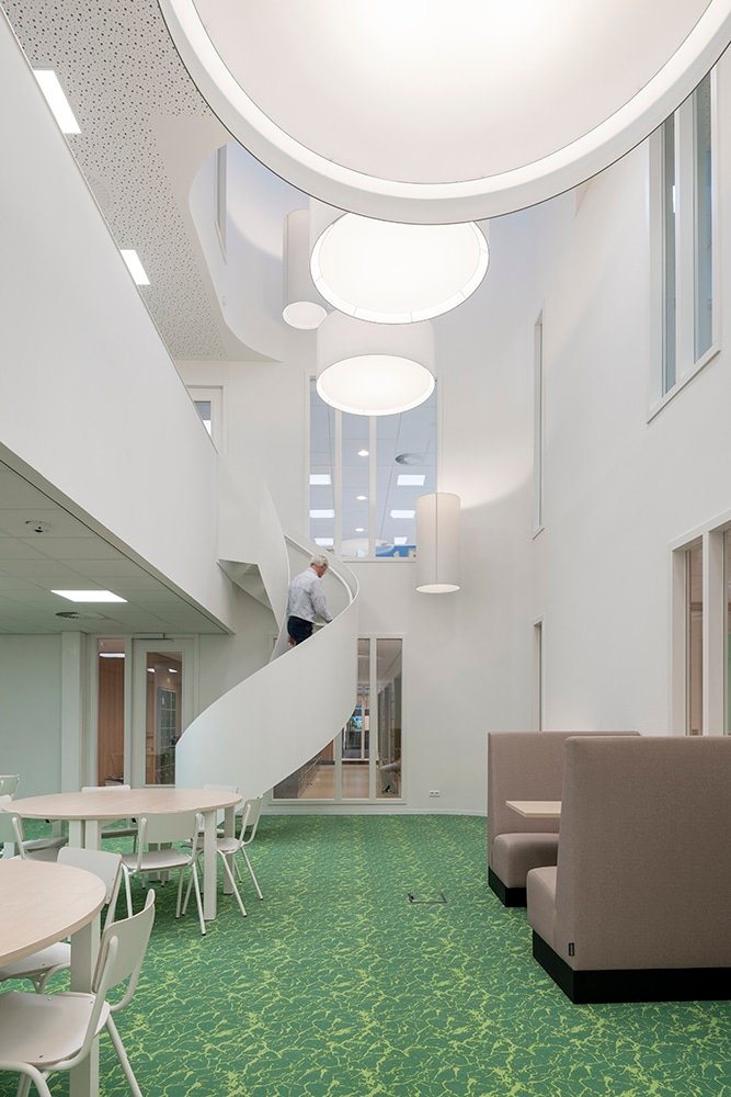 Het gebouw straalt één identiteit uit, onderverdeeld in een aantal clusters met hun eigen sfeer en herkenbaarheid.
