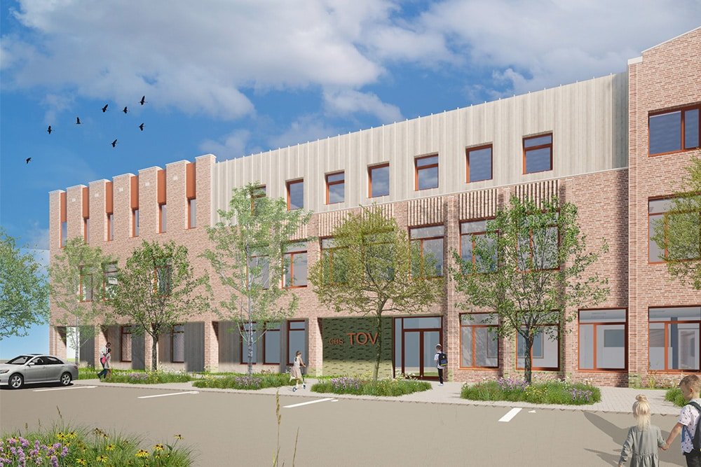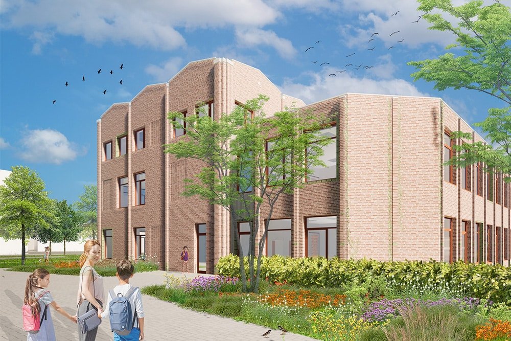 Er is gekozen voor een bouwsysteem waarin flexibiliteit centraal staat: een kolomstructuur met vrije vloervelden en volledig demontabele scheidingswanden zorgt ervoor dat lokalen in de toekomst eenvoudig vergroot, verkleind of anders ingericht kunnen worden. Op iedere plek kan een wand geplaatst worden. Die mate van flexibiliteit was ook de kern van de opgave. In het gebouw komen een school, kinderdagverblijf, BSO én maatschappelijke voorziening samen. Als één van deze gebruikers in de toekomst groeit of krimpt kan het gebouw dit binnen dezelfde contouren opvangen. Het onderwijsconcept van de school is gebaseerd op unitonderwijs, met open groepsruimten en een minimaal gebruik van binnenwanden. De plattegrond maakt het echter mogelijk om in de toekomst ook traditioneel, klassikaal onderwijs te faciliteren, zonder ingrijpende verbouwingen. Ook de maatschappelijke voorziening is zodanig ontworpen dat verschillende invullingen mogelijk zijn, van huisartsenpraktijk tot consultatiebureau. De levensduur van het gebouw wordt hiermee aanzienlijk verlengd. Ook dát is duurzaamheid. Het gebouw kan anticiperen op veranderende onderwijsbehoeften en groeit mee, zonder in te leveren op kwaliteit of gebruikerscomfort.