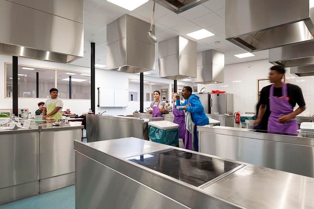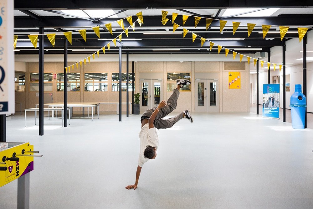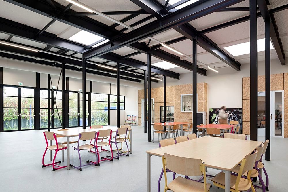 Centraal in het ontwerp staat de leerling: rust, structuur en overzicht vormen de basis voor een prettige leeromgeving. De lange gangen zijn getransformeerd tot brede, levendige straten waaraan verschillende pleinen liggen, elk met een eigen sfeer en functie. De praktijklokalen hebben directe verbindingen met buitenruimtes, variërend van moestuinen tot plekken voor heftruckonderwijs, waardoor leren binnen en buiten elkaar versterken. Door variatie in werkplekken, groot, klein, open of juist prikkelarm, vindt iedere leerling een passende plek. Zo is het monument uit de jaren zestig veranderd in een uitnodigende school die leren stimuleert en talent zichtbaar maakt.