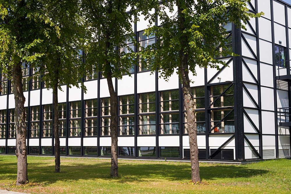 De renovatie vroeg om een zorgvuldige balans tussen behoud en vernieuwing. De historische gevel en het H.B.C.-bouwsysteem zijn behouden, maar voldoen nu wél aan hedendaagse eisen. Dit is bereikt door aan de binnenzijde een hoogwaardige tweede gevel te plaatsen, opgebouwd uit HSB-elementen met houten kozijnen. Deze klimaatgevel verbetert comfort, energieprestatie en akoestiek, terwijl de monumentale uitstraling intact blijft. In het interieur zijn nieuwe materialen zorgvuldig afgestemd op bestaande details, waardoor oud en nieuw een vanzelfsprekend geheel vormen. Daardoor blijft het oorspronkelijke karakter leesbaar, maar krijgt het gebouw een frisse en toekomstbestendige uitstraling.